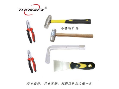 我公司專業生產防爆防磁工具,鈦合金工具,不銹鋼工具,德標鉻鋼,航天航空,船舶汽車維修,中石油,中石化,燃氣,采氣,制藥等專業專用防爆工具。功能特點:由于銅的良好導熱性能及幾乎不含碳的特質,使工具和物體摩擦或撞擊時,短時間內產生的熱量被吸收及傳導,另一原因由于銅本身相對較軟,摩擦和撞擊時有很好的退讓性,不易產生微小金屬顆粒,于是我們幾乎看不到火花,因此防爆工具又稱為無火花工具。