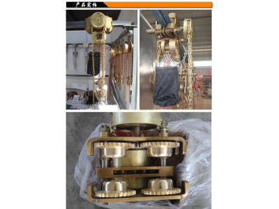 防爆手拉葫蘆,防爆滑動小車,防爆千斤頂防爆手拉葫蘆:本發(fā)明以鋁青銅、鈹青銅作為毛坯,手拉葫蘆外殼采用銅合金材料。防爆手拉葫蘆受力摩擦部位包括構(gòu)成手拉葫蘆的起重輪、手鏈輪、墻板、掛鉤、齒輪、齒輪軸采用鋁青銅、鈹青銅合金材料。防爆手拉葫蘆適用于石油、化工、煉油、采氣、油品運輸、礦山作業(yè)等易燃易爆氣體場所。