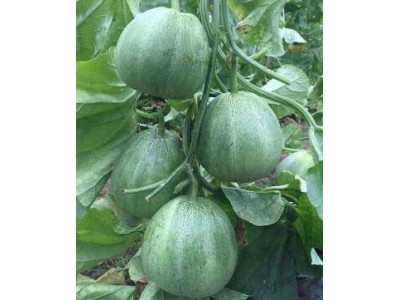 4、芝麻蜜甜瓜苗品種:早熟,生育期55-60天,植株長勢穩健,抗病力強,結果力特強,單瓜重250-500克。果實高圓形,灰綠色,覆8條線,外觀好看。口感好吃,含糖13-16度,極甜,個個都甜,市場走俏。適宜各種形式的保護地和露地栽培。