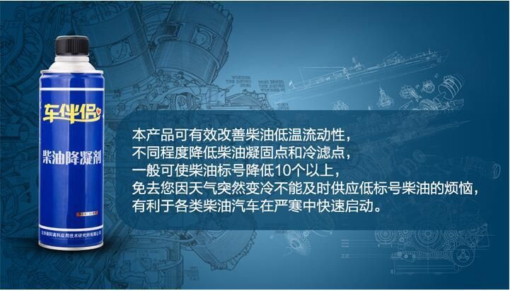 高科牌車伴侶柴油降凝劑適用于中間基、環烷基、進口原油所煉制的各種牌號的柴油,可改善由溫度降低所導致柴油中石蠟晶體形成三維網狀結構,改善柴油低溫流動性能,不同程度的改善濁點(cp)\傾點(pp)及冷濾點(cepp)。