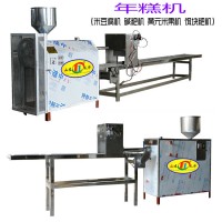 全自動年糕機由電熱溫控熟化裝置、年糕成型機和電氣控制自動輸送切斷機組成,THF-80Z型,生產效率:70-80公斤/小時,加熱器功率3+3KW,主電機3KW,輸送機0.4KW(調速),價格:7600-8800元/套。