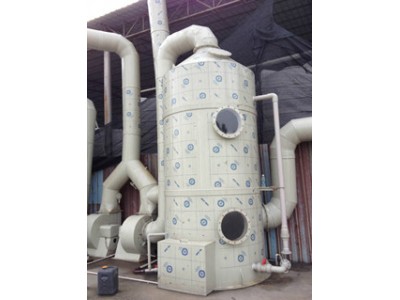 水噴淋吸收塔的塔內氣體由風機送入,氣體由下向上,吸收液由耐酸泵打入塔頂通過布液裝置均勻向下噴淋,形成逆流吸收,中合后的氣體經塔內除霧段后,經煙筒排入大氣,不同的酸性氣體采用不同的吸收液體吸收。采用氫氧化鈉溶液作吸收中和液,當溶液濃度2--6%時凈化鹽酸酸霧效率可達98%以上;凈化硫酸酸霧效率可達97%以上;凈化硝酸酸霧效率可達90%以上。 采用次氯酸鈉溶液作吸收中和液凈化含氰廢氣效率達95%以上。