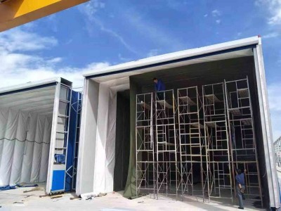 伸縮移動式噴漆房和無泵水幕噴漆房結合使用,是解決重型工件噴漆時移動難的問題,而活動噴漆前室就克服這個問題。工作時將活動前室收縮,用天車將重型工件吊運到噴漆場地,再將活動前室展開,罩住工件,即可工作。噴漆后再將前室收縮,用天車將工件吊離,不影響天車的工作,大大簡化了不斷用車間天車吊運大型笨重工件來回周轉的工藝流程;而無需專門的運輸工具;展開長度可以在任意位置,也可根據客戶的實際生產需要定做各種型號的非標尺寸。
