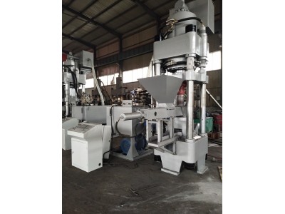 機架部分采用整體鑄鋼件,杜絕了鋼板焊接件的開裂,提高了設備的可靠穩定性和使用的壽命,采用先進的液壓傳動技術及疊加組合閥塊,使用優質的耐磨油封,油缸采用國內高科技工藝加工組裝,從而保證連續運轉不減弱油缸壓力,經久耐用,運行平穩,電腦控制,自動化程度高,故障率低,維護容易等。根據用戶情況另帶螺旋自送送料器、鏈條式自動出料器,降低了工人的勞動強度。
