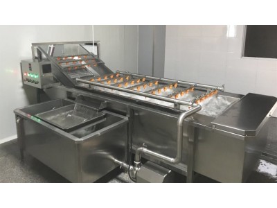 竹筍清洗機整機采用不銹鋼加工,輸送部分采用不銹鋼螺旋網帶或者鏈板式網帶,運行平穩、速度可調,設備中設有氣泡發生裝置以及高壓水循環沖淋裝置,使蔬菜呈上下左右翻滾狀態,把物料里面的泥沙、毛發等清洗干凈,出口處配有噴淋裝置經過二次沖洗,在清洗槽的上方有溢水口,漂浮物可以從溢流槽溢出,下方留有排污口,沉淀物可從排污口排出,達到徹底清洗的目的。清洗機的外形尺寸和實際設備樣式可根據用戶的需要和產量加工設計,果蔬清洗機適用于:蔬菜、水果、水產品、中草藥等顆粒狀、葉狀、根莖類產品清洗、浸泡和醬腌菜類脫鹽清洗。