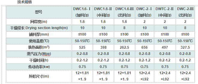 將上表中同一規格的網帶干燥機加料臺,中間臺.出料臺三臺串聯使用,保證蔬菜脫水干燥生產工藝要求.顯著提高產量,有效保證產品品質。