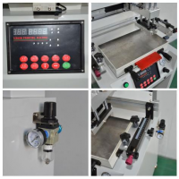 氣動網版上下,氣缸驅動印刷行程,穩定精準快速,符合多樣化生產效能,臺面配附三點微調便捷對位及吸氣功能,人機界面觸控面板,CPU微電腦控制。