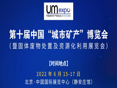 由中華全國供銷合作總社、生態(tài)環(huán)境部等相關(guān)部委聯(lián)合支持,中國再生資源回收利用協(xié)會、中國環(huán)境保護(hù)產(chǎn)業(yè)協(xié)會等單位聯(lián)合主辦的UM EXPO 第十屆中國“城市礦產(chǎn)”博覽會(暨固體廢物處置及資源化利用展覽會)(簡稱“礦博會”)、第二十屆中國國際環(huán)保展覽會(簡稱“CIEPEC”)將于2022年6月15-17日在北京中國國際展覽中心(靜安莊)同期舉辦。