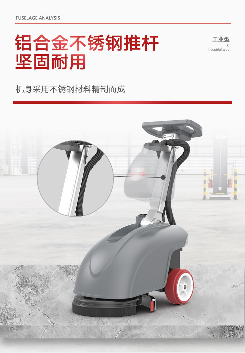 小巧方便易于折疊(高30公分,可適用于桌子底下清掃);保潔專用洗地機 老人專用洗地機 簡單易推 揚子洗地機 X1電動擦地機在工作的時候音量大約為58分貝,噪音小,不擾人,適合于各種場合,尤其適合家用,保潔公司: