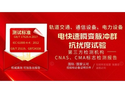 做電快速脈沖群試驗(yàn),找北京儀綜所電磁兼容實(shí)驗(yàn)室,試驗(yàn)后取得第三方檢測(cè)機(jī)構(gòu)報(bào)告,CNAS報(bào)告和CMA報(bào)告。