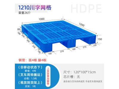 塑料托盤是一種與叉車、貨架等物流設備配套使用的物流單元。可用來存放、裝載、搬運貨物,是現代化物流倉儲中必不可少的物流設備之一。塑料托盤的出現是適應環保需要,使用塑料托盤代替木托盤可減少對森林破壞的產品;是適應物流業發展的必然產物,隨著食品安全觀念的不斷強化,醫藥行業衛生性的高要求,塑料托盤以其防腐蝕、防潮濕、防銹蝕、抗蟲蛀、不發霉等特點受到食品、醫藥行業的青睞和追捧。此外,塑料托盤的承載性能高和使用壽命長等特點,在化工、輕紡、制造業等領域有著廣泛的應用。