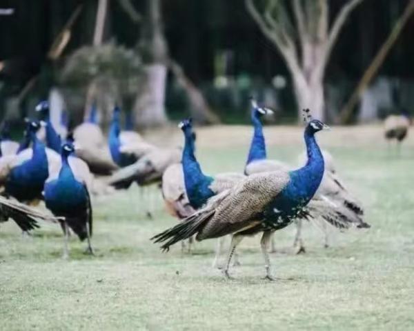 小朋友對孔雀印象很深刻,因為它是那么的優雅迷人美麗。每年的三四月份是孔雀的求偶季,這時的雄孔雀們已經陸續重新長出了華麗的尾上覆羽,一個個精神抖擻的尋找著自己的心儀對象,一旦發現心儀的那個"她",馬上就一邊展示它那五彩繽紛的尾屏,不斷抖動著、摩擦著羽毛,發出"沙沙沙"的聲音,一邊還不停地做出各種各樣優美的舞蹈動作,以求得雌孔雀的芳心。孩子們看看美麗的孔雀,拍拍照,合合影,投喂投喂孔雀。