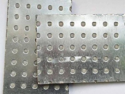 防爆板采用1mm鍍鋁鋅穿孔板,穿孔率30%左右,一方面降低鍍鋁鋅板受熱的面積,由于鍍鋁鋅板的受熱面積降低30%,降低鍍鋁鋅板接受的熱量,降低鍍鋁鋅板熱變形量,延長(zhǎng)防爆板的耐火時(shí)間,另一方面,30%穿孔率保證鍍鋁鋅板受熱膨脹變形時(shí)提供有富余孔洞空間釋放內(nèi)應(yīng)力,從而保證防爆板整體熱變形小,性能得以保證。同時(shí)采用穿孔板形式提高板材回彈性、變形量大,當(dāng)發(fā)生炸時(shí),穿孔板比整板的彈性好、剛性弱從而釋放*炸產(chǎn)生的沖擊載荷,保證板面有足夠變形而不被撕裂。