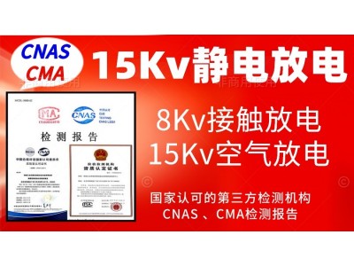 北京儀綜所EMC實驗室,提供8Kv、15Kv靜電放電(ESD)抗擾度試驗服務(至高可達30Kv),按照GB/T17626.2-2018《電磁兼容測試靜電放電抗擾度試驗》規定的4級試驗要求,出具國家認可的第三方檢測機構檢測報告,蓋CNAS和CMA章,還可以不限時間的進行摸底測試。
