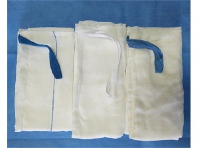 結(jié)構(gòu)及組成:I型:由脫脂紗布加工制成;II型由夾有X射線可探測(cè)組件的脫脂紗布?jí)K加工制成,腳步均可縫制一根腹巾帶。