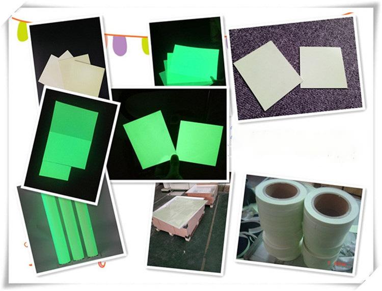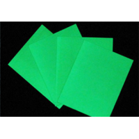 夜光板是用高亮夜光粉與PVC樹脂材料混合后制作完成,是種硬質的發光板材,可以切割成不同的規格,可以在表面進行絲網印刷,制作成各種蓄光自發光導向標示系統。目前這種板主要出口到歐美等市場,制作的消防標示符合歐盟標準。材料具有一定的阻燃性能。