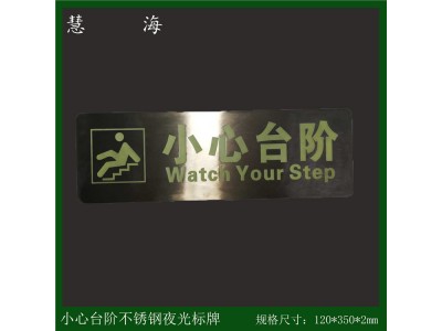 夜光304不銹鋼提示標牌 發光小心臺階提示標志