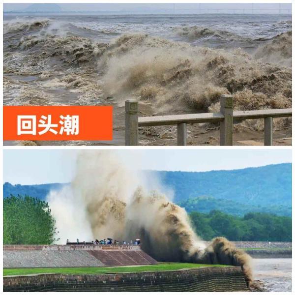回頭潮:咆哮而來的潮水遇到障礙后會被反射折回,在那里它猛烈撞擊對面的堤壩,然后以泰山壓*之勢翻卷回頭,落到西進的急流上,形成一排"雪山",風馳電掣地向東回奔,聲如獅吼。
