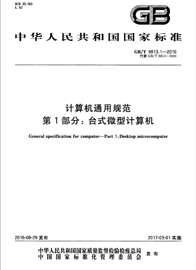 GB/T9813.1-2016《計算機通用規范 第1 部分:臺式微型計算機》