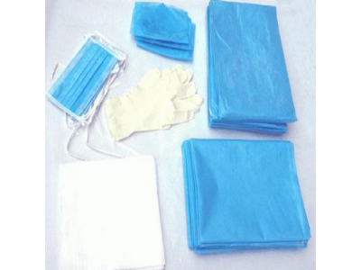 結構及組成: 本品由基本配置一次性使用手術洞巾、一次性醫用中單和可選配置一次性使用手術衣、一次性使用滅菌橡膠外科手套、醫用脫脂紗布塊、一次性使用口罩、帽、一次性使用治療巾、刀片、醫用棉球、醫用棉紗墊、海綿刷、一次性醫用墊、醫用縫合針、非吸收性外科縫線、醫用保護套、小碗、彎盤、藥杯、塑料盆、方盤、紗布繃帶、醫用碘伏棉球、透氣膠帶、一次性使用醫用橡膠檢查手套、醫用鑷、包布、一次性使用配藥用注射器組成。