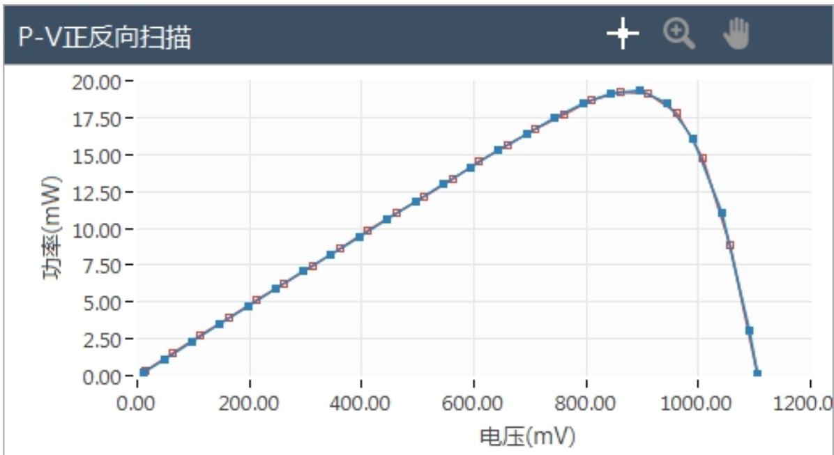 運用微擾算法,測試過程中不斷地反饋修正太陽能電池的最大功率點位置,使電池長時間保持在最大功率放電狀態, 放電過程實時監控輸出功率, 通過設定測試時長和掃描間隔時間采集記錄最大功率隨時間變化的值和P-t曲線。時間顯示單位可選擇為具 體日期/天/小時/分鐘。在MPPT追蹤時,在總測試時常內(如1000小時)定期掃描正反掃 IV 曲線(如每10小時掃描一次) ,記錄電池VOC、ISC、FF和PCE等四個關鍵性能指標隨時間變化的情況(1000小時內100個數據點)。注意,此時給出電池的P-t和PCE-t (正反掃)都是有意義的,P-t的數據點可能達到數十萬個(如每10秒記錄一個P點,則1000小時內總共360000數據點),遠多于PCE-t的數據點。實際上由于遲滯效應的存在, PCE-t不論是正掃還是反掃結果都有一定誤差,P-t更準確的反映了鈣鈦礦太陽能電池真實功率的變化。
