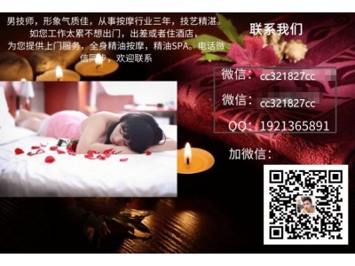 微信:cc321827cc QQ:1921365891 南寧男按摩師,帥哥型男上門精油,推油按摩,南寧異性,spa按摩,專業(yè),南寧男按摩技師,夫妻按摩,精油推油按摩spa護理師為南寧女士上門服務: 中醫(yī)經(jīng)絡推拿,全身精油香薰按摩,足底按摩,生理調(diào)理,減肥美體,香熏spa水療,常見病的恢復理療,本人學的針灸推拿專業(yè),技術(shù)手法獨到,按摩經(jīng)驗豐富,職業(yè)道德良好, 是您的私人健康護理專家.歡迎預約上門享受專業(yè)的按摩護理,滿足您的健康需求.請?zhí)崆邦A約cc321827cc《只為女士服務,非誠勿擾!》 全天24小時提供服務 專業(yè)技師 值得信賴 帥氣的南寧男技師為您提供優(yōu)質(zhì)丶專業(yè)的上門SPA推油按摩服務 格守職業(yè)道德,保守客戶隱私,讓您足不出戶可享受到安全,健康,貼心,溫馨的南寧男按摩技師上門按摩服務! 更多服務歡迎來電咨詢預約 QQ:1921365891微信:cc321827cc 南寧男技師上門按摩為在南寧女士提供上門巴厘島spa推油護理服務。全市以上酒店以及公寓皆可在預約半小時內(nèi)到達。 南寧男技師按摩會所,南寧男技師上門按摩,南寧男模spa,南寧帥哥spa按摩,南寧男技師spa,南寧女子休閑會所,南寧巴厘島spa,南寧女士spa等等南寧男技師按摩會所,夫妻情趣按摩, 南寧男技師上門按摩,南寧男模spa,南寧帥哥spa按摩,南寧男技師spa,南寧女子休閑會所,南寧巴厘島spa,南寧女士spa