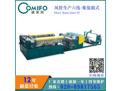 全自動風管生產六線是全自動五線的升級版,其體積小,無需送料平臺,結構牢固,安裝調試簡便,方便放置于施工現場,亦可放置于20尺標準集裝箱內,實現移動式加工。