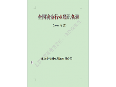 2025全國冶金行業(鋼廠鐵廠鋁廠有色金屬)通訊名錄,收錄了全國31個省市的金屬冶煉企業。主要包括黑色金屬冶煉及壓延加工業(鋼鐵廠)850家,銅冶煉企業350家,鋁冶煉企業410家,其他有色金屬冶煉300家,冶金礦山設計單位20多家。單位公司名錄信息包括:單位名稱、詳細地址、郵政編碼、企業法定代表人、聯系人、聯系電話、所屬行業、投產時間等。