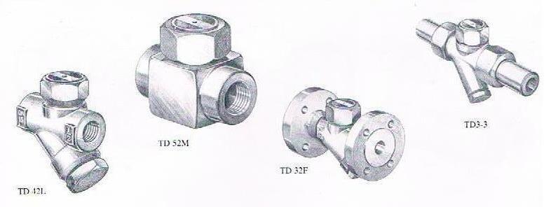 斯派莎克SpiraxSarco疏水閥:熱動力疏水閥結合了安全可靠、結構簡單和效率高的特點,其工作壓力可達120bar g。斯派莎克SpiraxSarco疏水閥:TD熱動力疏水閥系列各項特點:1、本體結構結實、簡單、重量輕、操作壓力范圍大。2、只有一個活動部件、一個硬化的不銹鋼蝶片,具有很長的使用壽命。同時可具止回閥的功能。3、間歇噴放排水及迅速緊密的關閉,保證無泄漏。4、可承受過熱、水錘、冷凍、腐蝕性冷凝水。蝶片落入閥座時發出“喀嚓”聲,便于檢測工作性能。5、在任何安裝位置下均能正常工作。6、有各種不同的型號,可選擇螺紋、法蘭、焊接等連接方式。