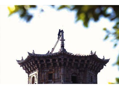 古建筑上部的寶頂、尖塔、吻獸、塑像、寶盒以及拱下的防鳥絲網等金屬物件與部件在某種程度上講也屬于接閃器,均應與防雷裝置可靠地連接。此外,在防雷檢測過程中發現,有的